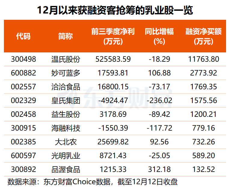 资金方面,有 9 只乳业股本月获得杠杆资金加仓,其中,温氏股份获融资客抢筹约 1.18 亿元,妙可蓝多获融资净买入约 2773.92 万元,洽洽食品、皇氏集团、益生股份融资净买额均超千万元。