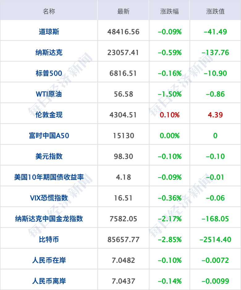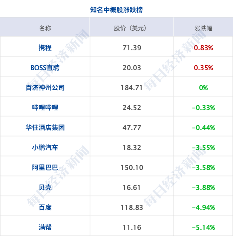 美股三大指数集体收跌,道指跌 0.09%,纳指跌 0.59%,标普 500 指数跌 0.16%,博通跌超 5%,苹果、亚马逊涨超 1%,特斯拉涨超 3%;加密矿企、货币储备概念跌幅居前,Hut8 跌超 14%,Circle 跌超 9%,Coinbase 跌超 6%;汽车制造、贵金属、旅游、减肥药板块走高,丰田汽车、礼来涨超 3%,安进、辉瑞、罗氏涨超 2%。美国扫地机器人鼻祖 iRobot 申请破产,股价大跌超过 70%,一度触发熔断机制,最终收跌 72.69%,总市值仅剩下 0.4 亿美元 (约合人民币 2.8 亿元)。纳斯达克中国金龙指数收跌 2.17%,中概股普跌,百度跌近 5%,金山云跌超 4%,知乎、阿里巴巴、小鹏汽车跌超 3%,理想汽车、好未来跌超 2%,名创优品涨超 2%。