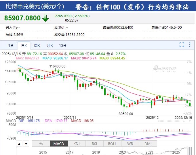 截至发稿,比特币跌 2.56%,报 85907.08 美元。
