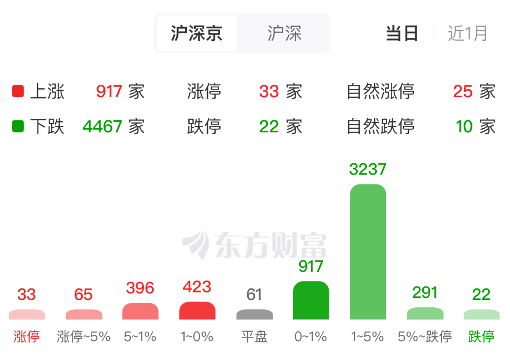 A 股三大股指早盘单边下行,截至午间收盘,沪指跌 1.22%,深成指跌 1.88%,创业板指跌 2.35%。两市半天成交 1.12 万亿元,较昨日同期缩量 606 亿元;全市场仅 917 股飘红,仍有 33 股涨停。