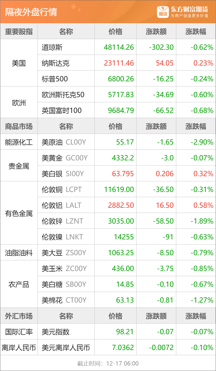 钢材:12 月 16 日,全国 300 家长、短流程代表钢厂废钢库存总量 523.33 万吨,增 0.23%;库存周转天 7.9 天,持平;日消耗总量 55.86 万吨,增 0.20%;日到货总量 57.06 万吨,降 1.14%。(我的钢铁网)