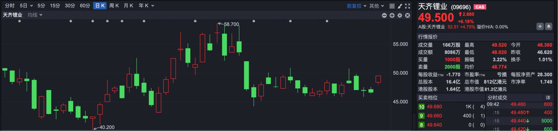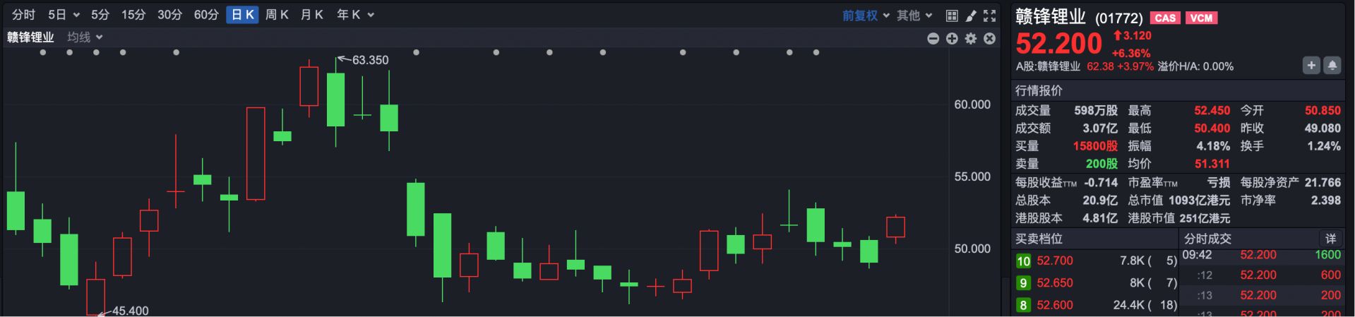焦点公司方面,天齐锂业 (HK09696) 和赣锋锂业 (HK01772) 两家锂矿公司早盘均涨超 6%。