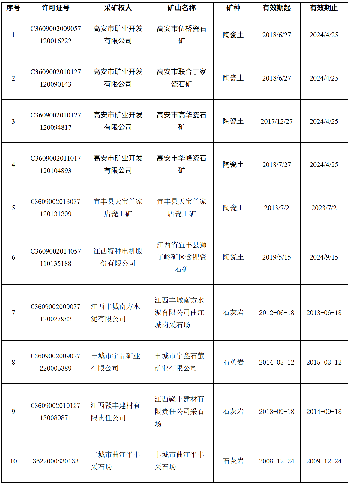 根据公示,有 5 宗采矿权许可证有效日期是在 2024 年到期,1 宗 2023 年到期,另有 18 宗是在 2010-2019 年之间陆续到期,还有 3 宗在 2010 年之前就已经到期。