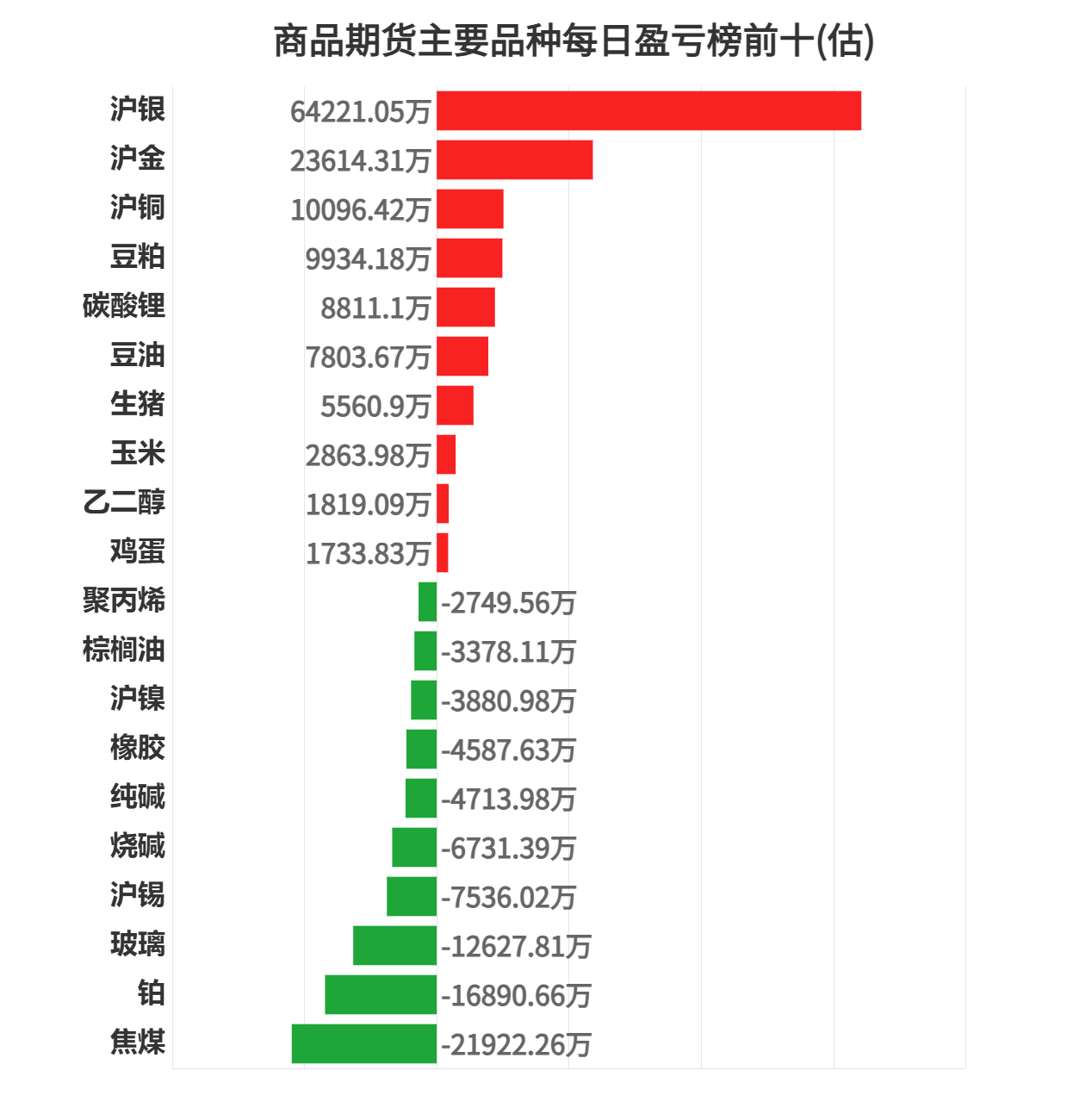 今日商品期货上榜机构席位中沪银盈利第一,为 64221.05 万元。