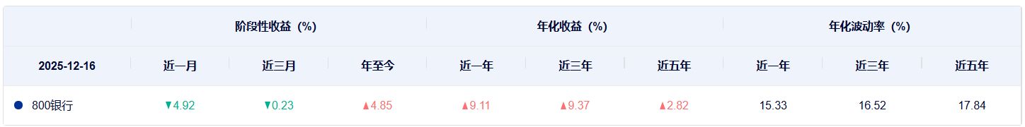 再对比两个指数的过往表现,从近一年、近三年到近五年,中证 800 银行指数、中证银行指数的年化收益都比较接近。同时,在波动率方面,两个指数的年化波动率也相差无几。