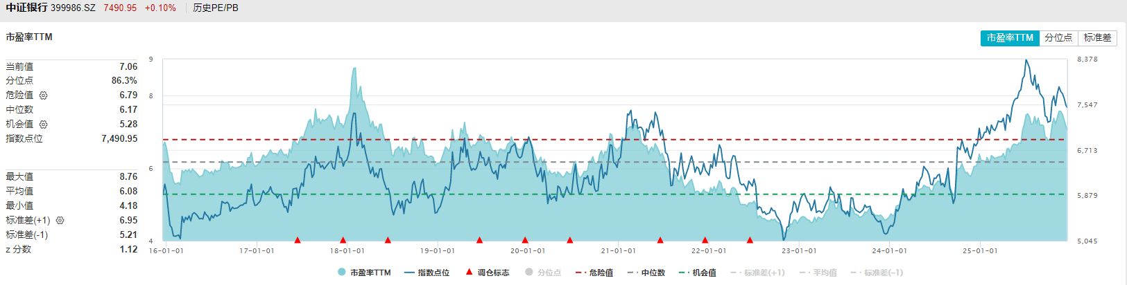 最后再看两个指数的估值水平,Wind 数据显示,中证 800 银行指数和中证银行指数的市盈率 TTM 均回升到了近十年 80% 分位以上,均属于较高水平。