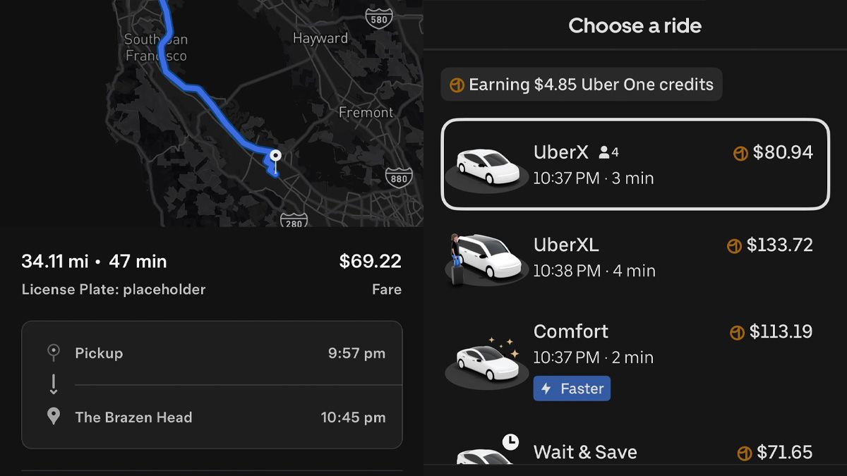 以奥斯汀为例,一段约 34.11 英里 (约 54.9 公里)、约 47 分钟的行程,Robotaxi 车资约 69.22 美元,折算每英里约 2.03 美元;相比之下,同路段 UberX 车资约 80.94 美元,折算每英里约 2.37 美元。