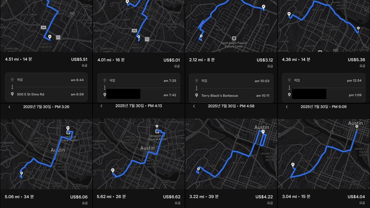 此外,有网友分享实测 Robotaxi 最新的短程动态优惠 (Short rides now costless with dynamic pricing) 政策,当日连续搭乘 11 趟,总里程约 55.83 英里 (约 89.8 公里)、耗时 254 分钟,总车资仅 56.83 美元。换算下来,平均每英里约 1.02 美元、每公里约 0.63 美元,且全程免小费。