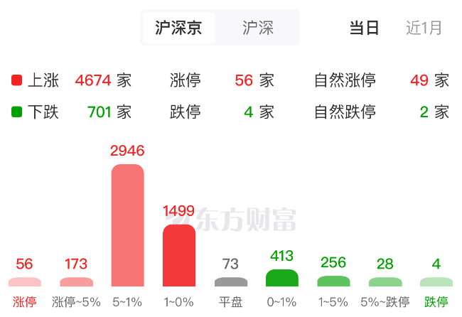 截至午间收盘,沪指涨 0.59%,深成指涨 0.93%,创业板指涨 0.99%。量能方面,两市半天成交 1.09 万亿元,较昨日同期放量约 427 亿元。全市场共 4674 股飘红,56 股涨停。