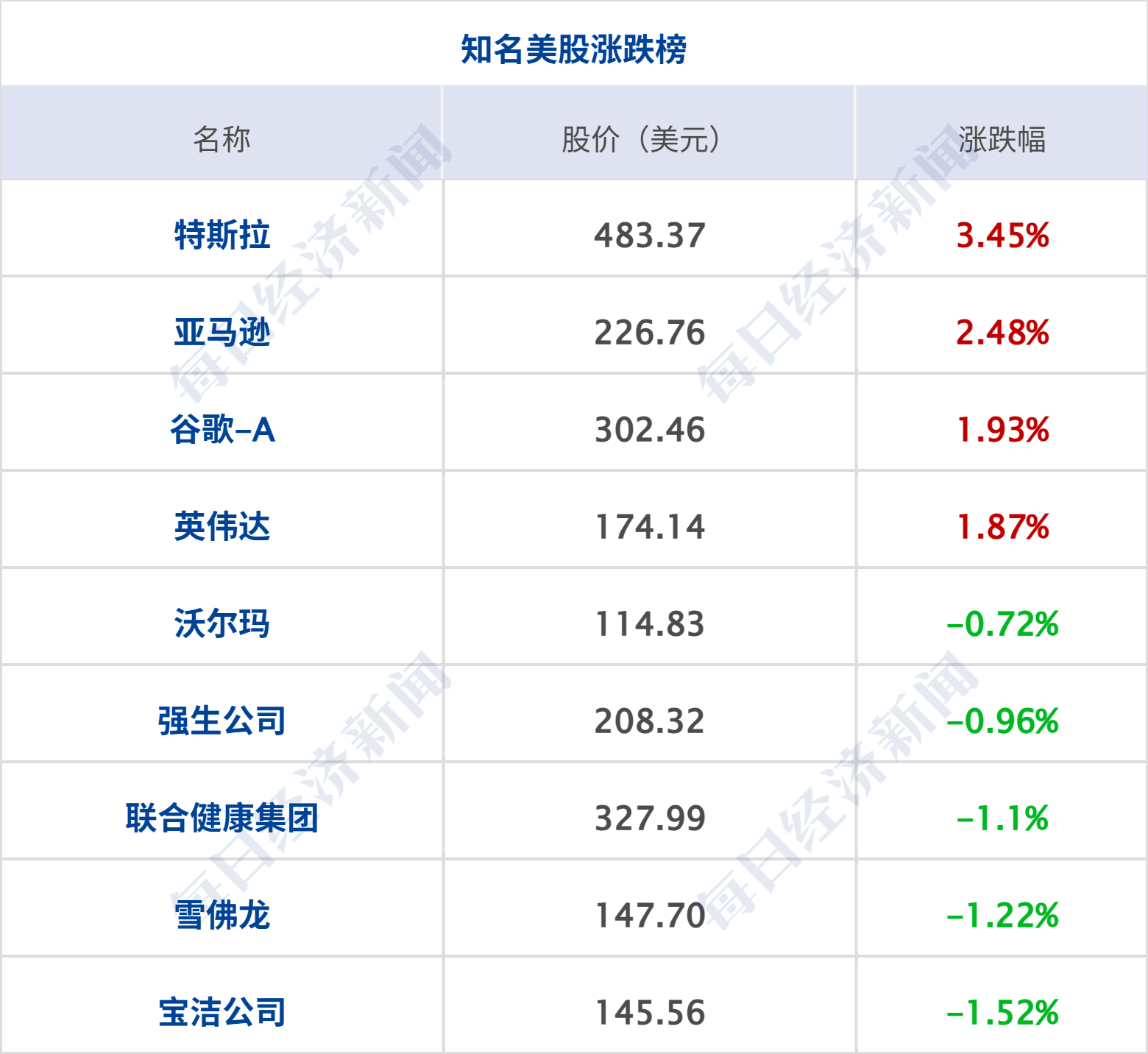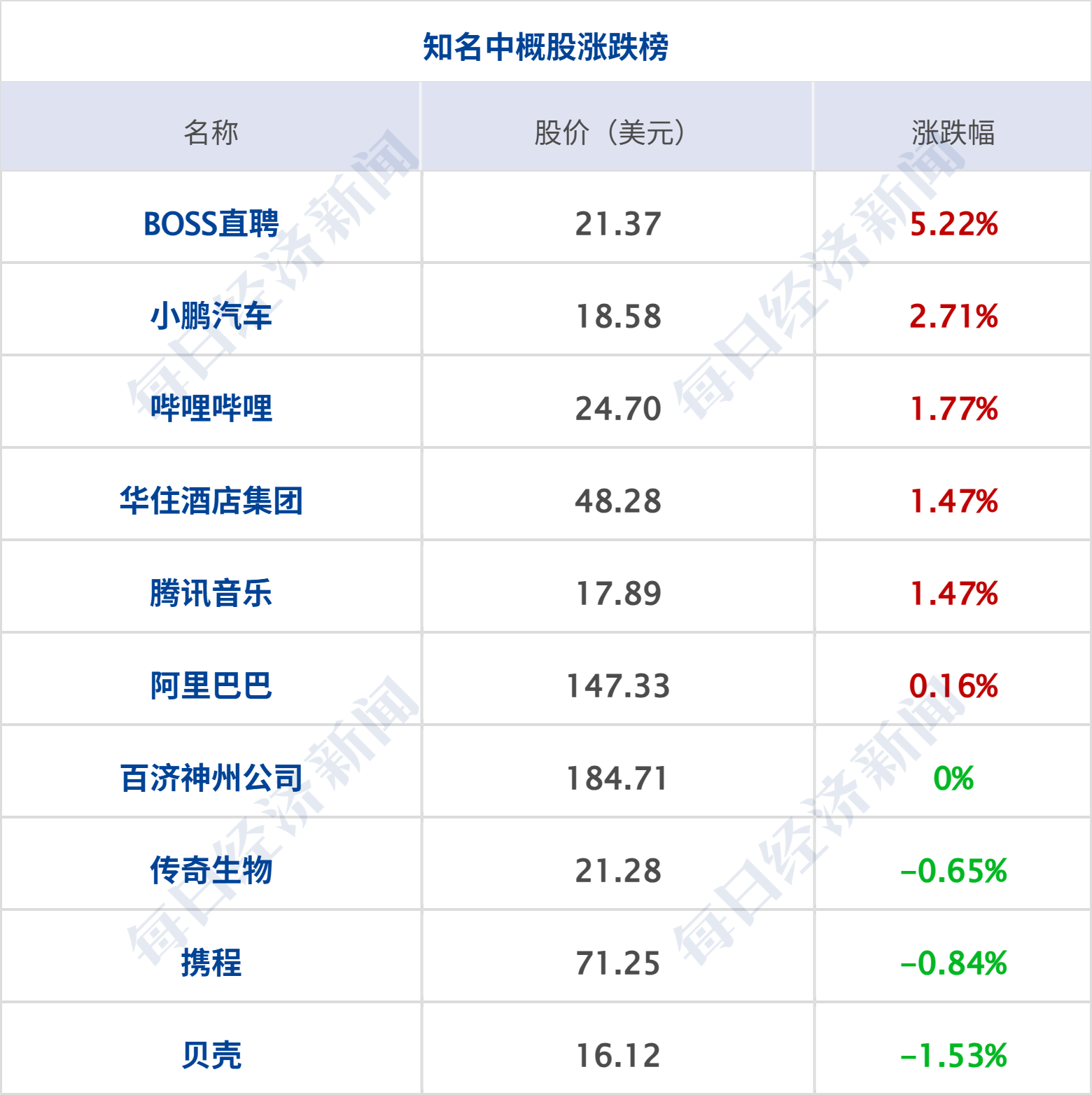 美股三大指数集体收涨,道指涨 0.14%;纳指涨超 310 点,涨幅为 1.38%;标普 500 指数涨 0.79%。大型科技股普涨,特斯拉涨超 3%,亚马逊、脸书涨超 2%,谷歌、英伟达涨近 2%,微软涨超 1%,美光科技涨 10%。特朗普媒体科技集团大涨 41.9%。纳斯达克中国金龙指数涨 0.97%,BOSS 直聘涨超 5%,小鹏汽车涨近 3%,禾赛科技涨近 3%,万国数据涨超 2%;名创优品跌超 2%,贝壳跌逾 1%;叮咚买菜跌超 7%。