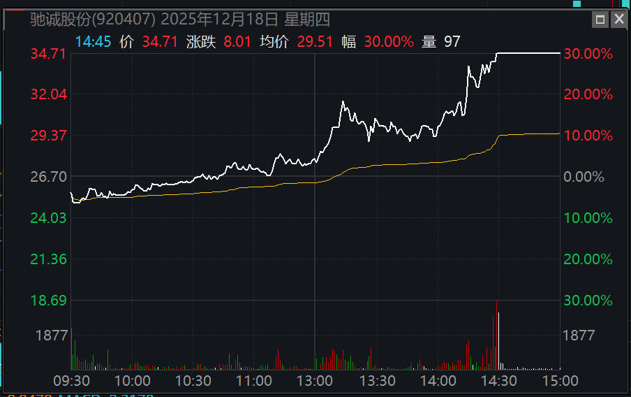 12 月 18 日盘后,驰诚股份发布了股票交易异常波动公告。公告称,公司股票最近 3 个有成交的交易日 2025 年 12 月 16 日至 2025 年 12 月 18 日以内收盘价涨幅偏离值累计达到 41.17%,根据 《北京证券交易所交易规则 (试行)》 的有关规定,属于股票交易异常波动情形。