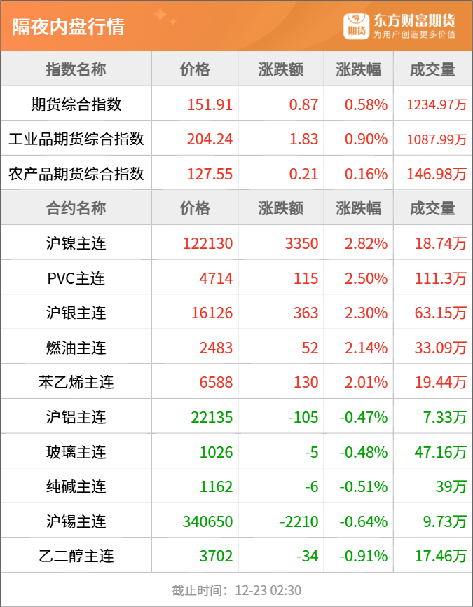隔夜行情