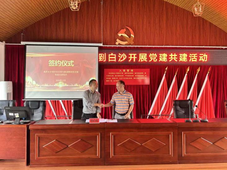 新湖期货党支部与白沙县南开乡牙佬村党支部签署了党建共建合作协议,就组织建设共促、党建项目合力研究、党建载体互用等党建共建内容达成合作共识。牙佬村是新湖期货 2017 年首单天然橡胶 「保险+期货」 精准扶贫项目的实施地,可以说是白沙县 「保险+期货」 的发源地。会上,新湖期货进行了 「保险+期货」 主题培训。