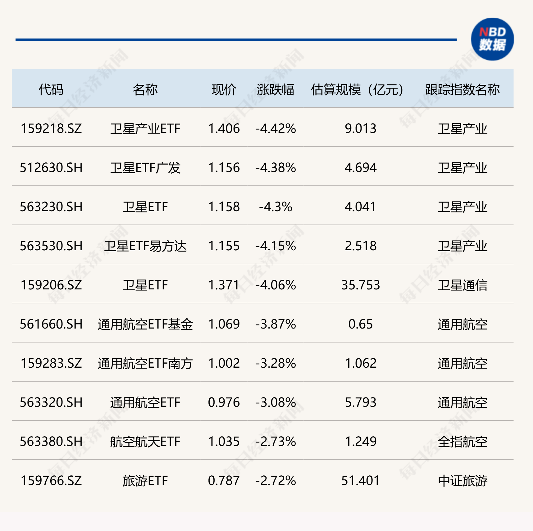 下跌方面,卫星相关 ETF 跌超 4%。