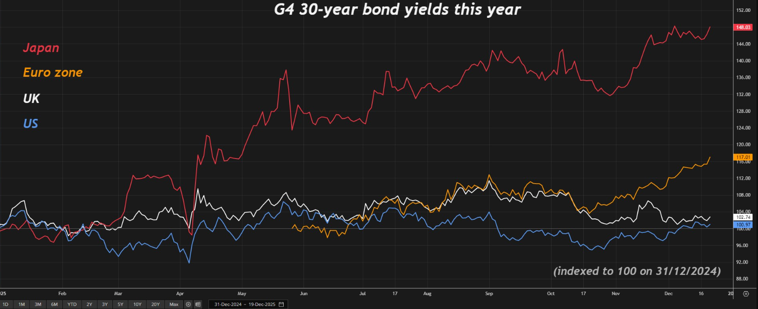 然而,尽管美国长期债券今年表现坚韧,明年仍将面临严峻挑战。固定收益久期的全球背景依然艰难——风险溢价、通胀风险和债务供应都在上升,对人工智能生产力故事的疑虑持续发酵,对美联储独立性的担忧也在加剧。