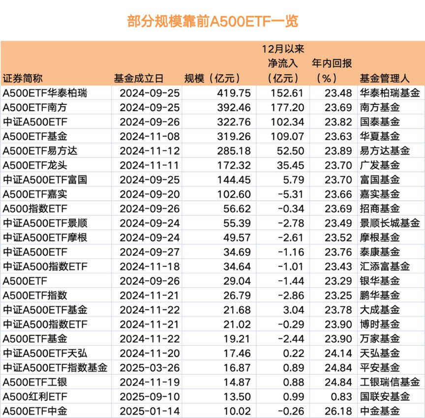 临近年末,资金加速进场 「扫货」 股票 ETF,A500ETF 品种备受青睐。