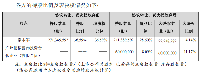 公告显示,12 月 22 日,莱茵生物控股股东、实控人秦本军与广州德福营养签署 《控制权变更框架协议》《股份转让协议》《表决权放弃协议》。