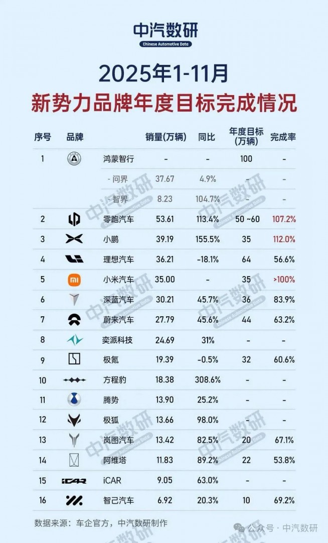 按照中汽数研公布的数据,深蓝汽车 1-11 月的年度目标完成率为 83.9%,在新势力品牌中表现尚可,如果基于 11 月的销量规模以此推测,完成 36 万的目标具备可能性。