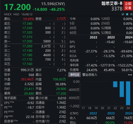 在本次上市的 3 家公司中,作为生物科技的公司翰思艾泰可谓表现最差,上市首日股价就接近腰斩。而同类型公司华芢生物同样遭遇 「滑铁卢」,上市首日股价大跌 29.32%。23 日,华芢生物股价再度大跌 18.89%。
