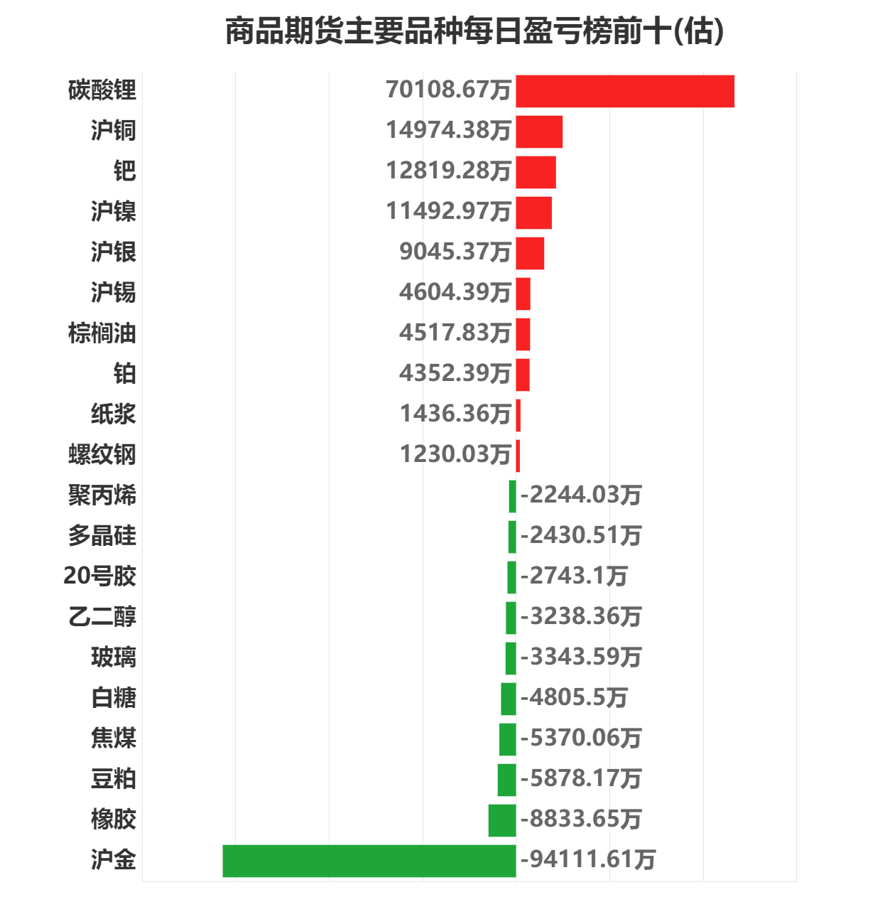 今日商品期货上榜机构席位中碳酸锂盈利第一,为 70108.67 万元。