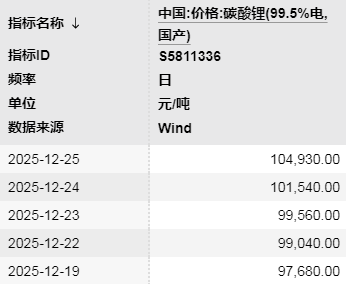 一方面,交易所层面在不断加大调控力度。24 日晚间广期所宣布,自 12 月 26 日交易时起,对 LC2601 等合约单日开仓量进一步收紧,25 日早盘部分碳酸锂期货合约跌幅也一度达到 5% 以上。