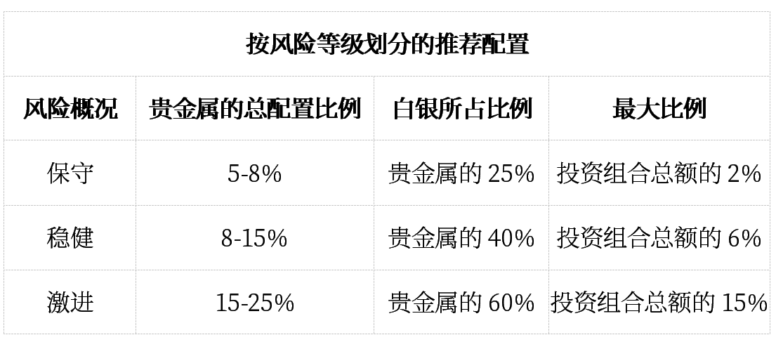 稳健策略:配置比例为 10-20%,并将白银权重提高至 50%;