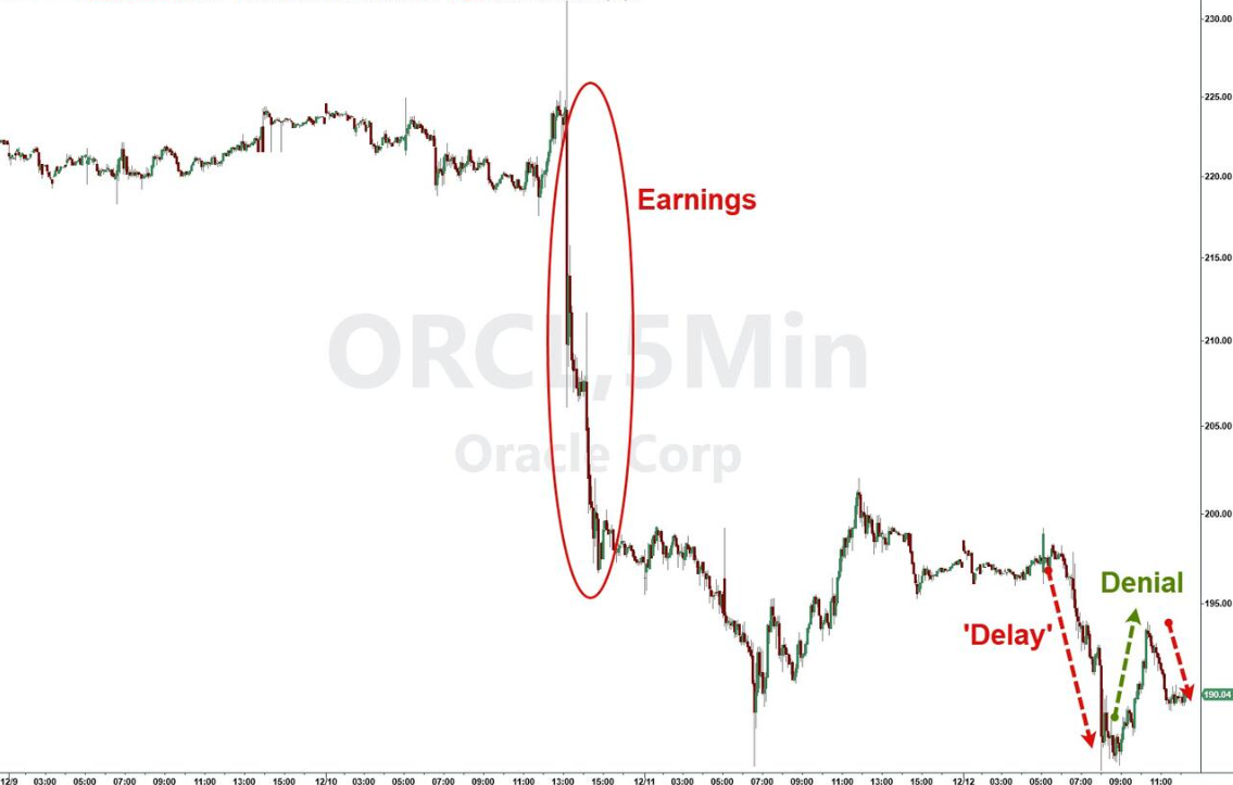 市场很快给出了残酷的判决。随着季度财报披露,甲骨文真实的盈利能力和外部客户拓展并未达到市场的狂热预期。股价从 9 月高点一路滑落,跌幅达 45%,近乎腰斩。这成为 2025 年最具教育意义的案例:市场先是狂热地给予其 「下一个云巨头」 的估值,随后用财务报表进行冷酷证伪。