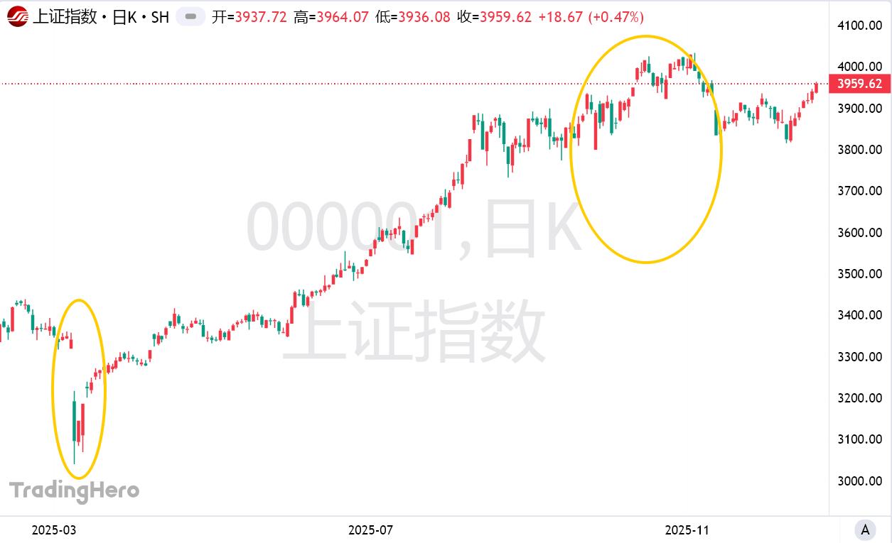 2025 年,A 股完成了一场跌宕起伏的 「信心压力测试」。其核心情节,是上证指数在剧烈的外部冲击与内部托举的角力中,顽强攀升,最终在 10 月 28 日,时隔整整十年,第三次触及 4000 点这一极具象征意义的关键关口。