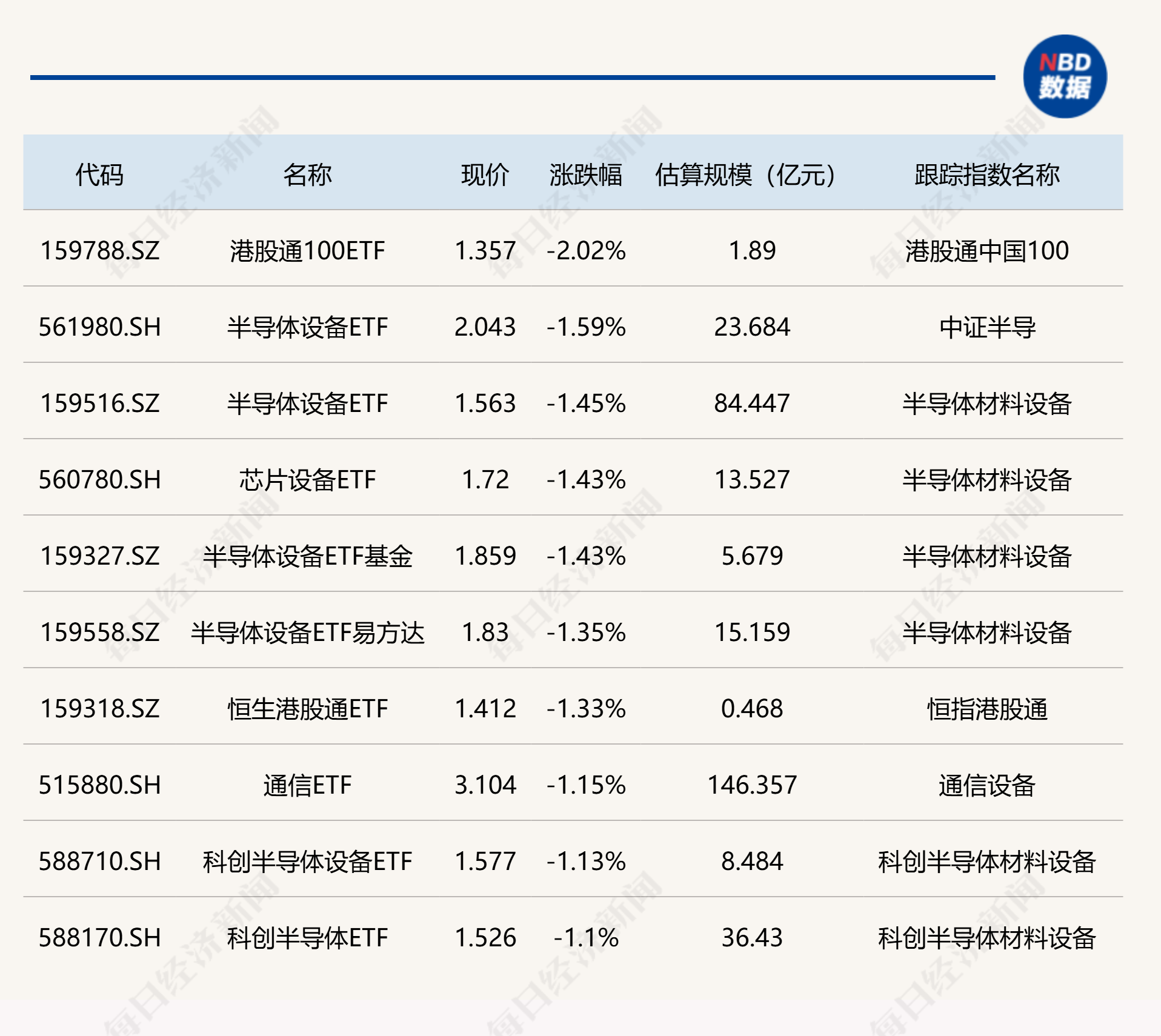 ETF 涨跌幅方面,恒生 ETF 港股通涨超 7%,矿业 ETF 涨超 4%。