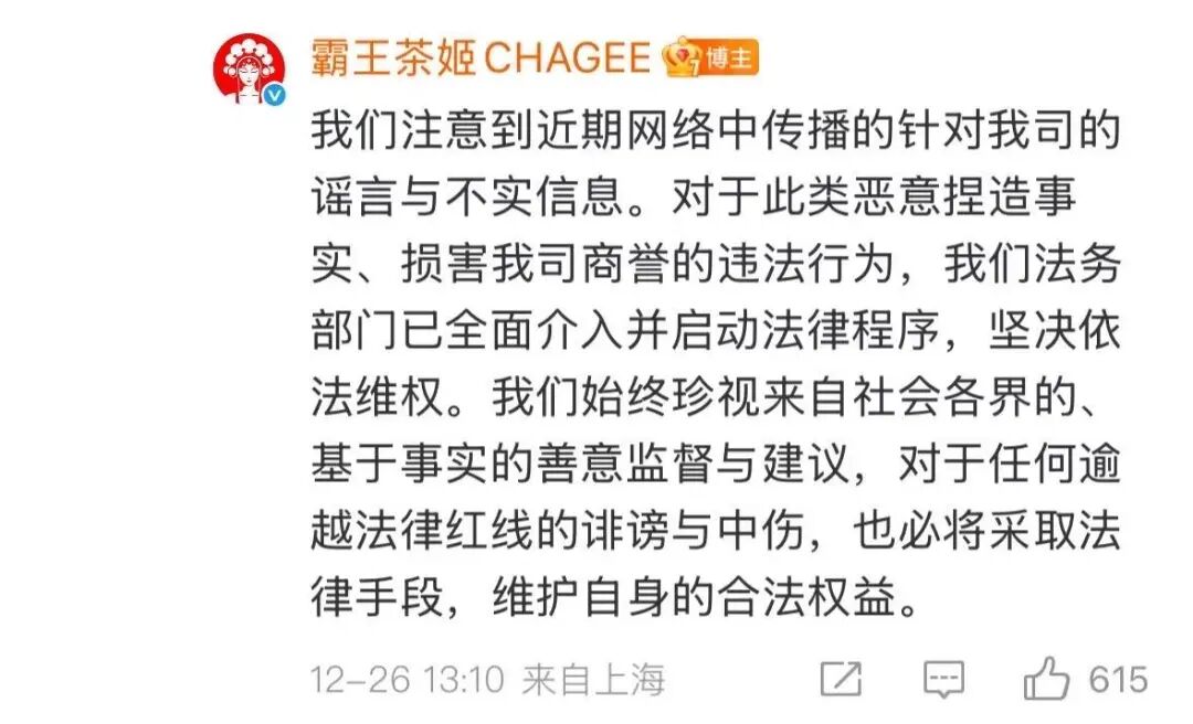 此外,公司也表示,「我们注意到近期网络中传播的针对我司的谣言与不实信息。对于此类恶意捏造事实、损害我司商誉的违法行为,我们法务部门已全面介入并启动法律程序,坚决依法维权。」