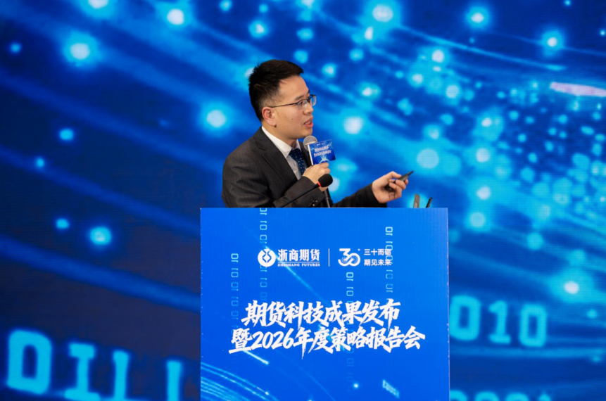 在随后举行的 2026 年度策略报告会环节上,浙商期货研究团队发布了 《自强不息,飞龙在天——2026 年宏观分析》 及 《2026 年度浙商十大策略》,围绕 「新旧经济转换」、「反内卷」、「美国信用下降及 『逆全球化』 浪潮」 等核心议题,详细阐述了新一年的宏观逻辑与年度十大策略建议,为与会嘉宾提供了极具前瞻性的市场分析与决策参考。