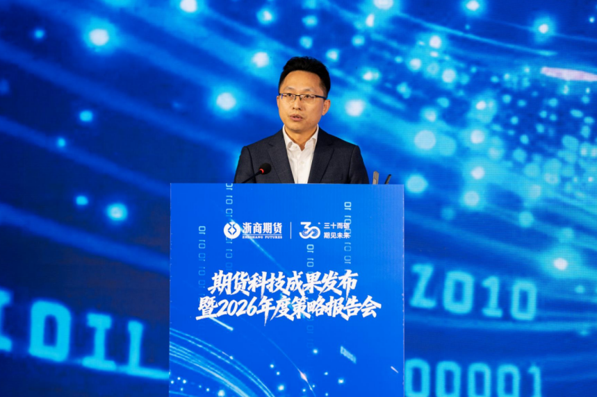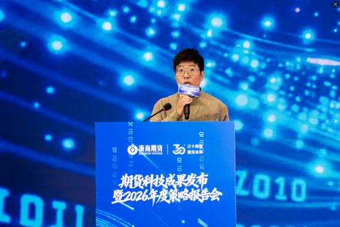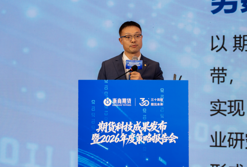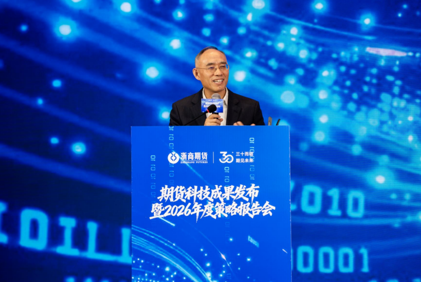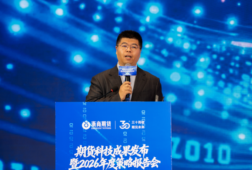 2025 年 12 月 27 日下午,浙商期货在杭州成功举办 「期货科技成果发布暨 2026 年度策略报告会」。作为浙商期货成立 30 周年系列的重要活动之一,本次大会聚焦数字金融与实体经济的深度融合,展示了以自主研发期货私域大模型 FutSeek(期货求索) 为核心的数字金融服务体系,并分享了 2026 年度金融市场展望与投资策略。来自期货交易所、行业协会、知名院校、科技公司、产业企业及金融机构的超过 300 名嘉宾齐聚一堂,共同见证浙商期货在科技赋能与业务创新方面的最新成果。
