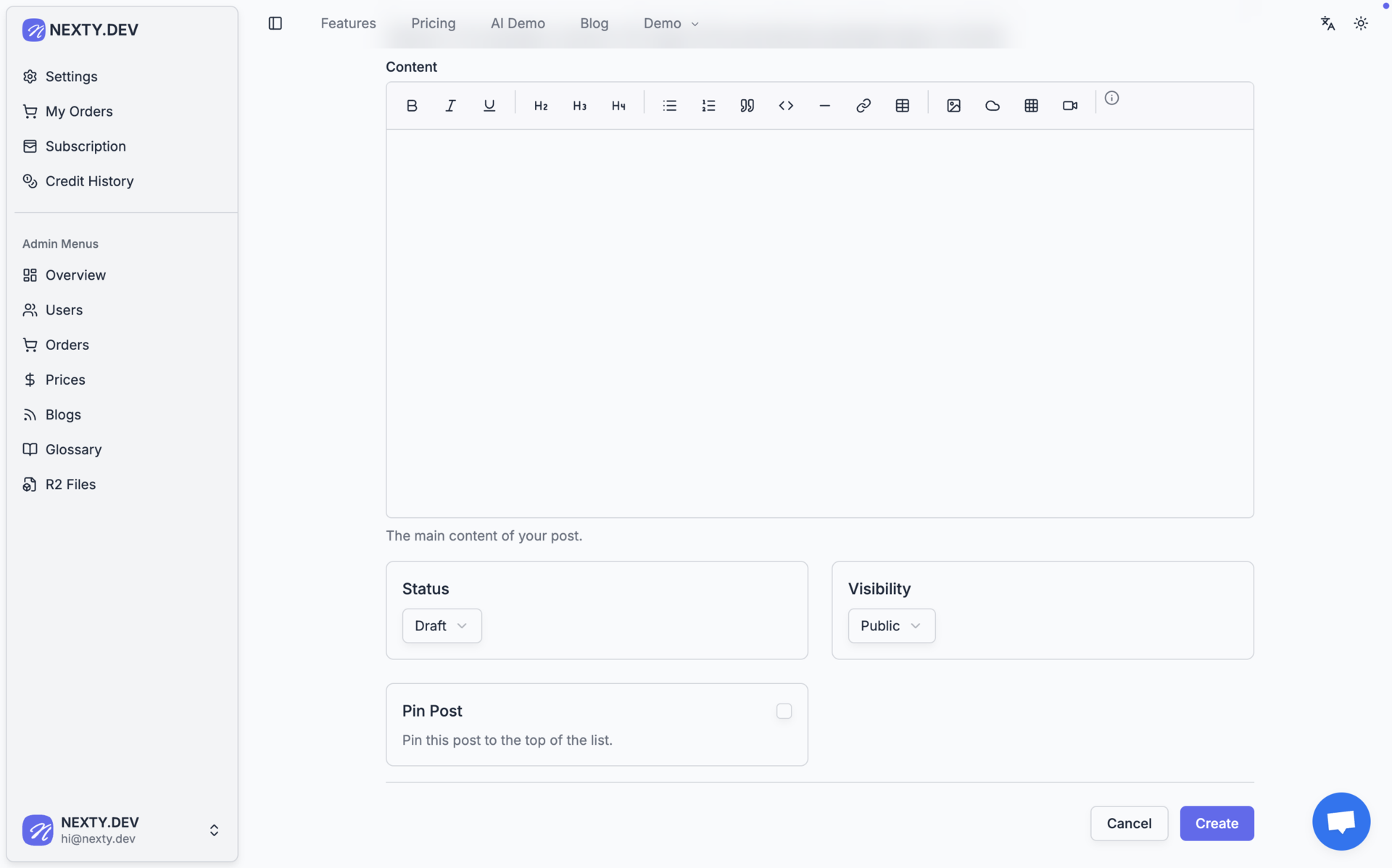 完整介绍可以来文档看:(NEXTY.DEV 的 CMS 模块介绍)[https://nexty.dev/zh/docs/guide/cms]