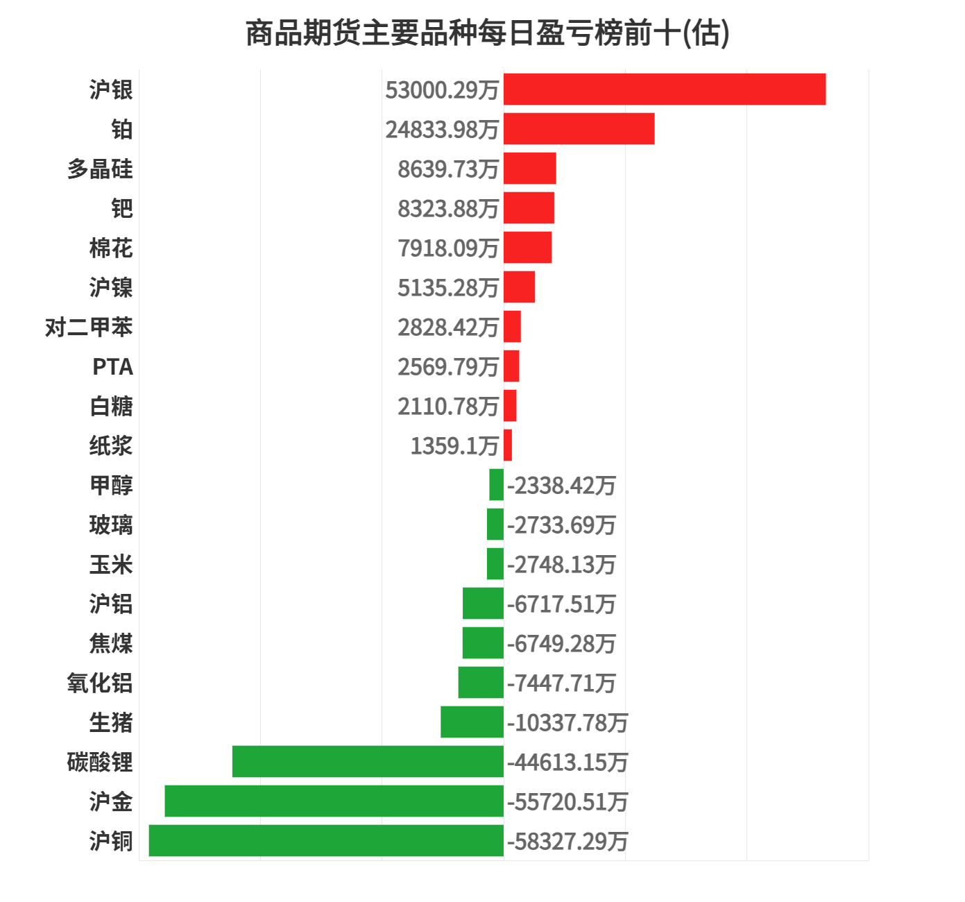 沪铜亏损第一,为 58327.29 万元。