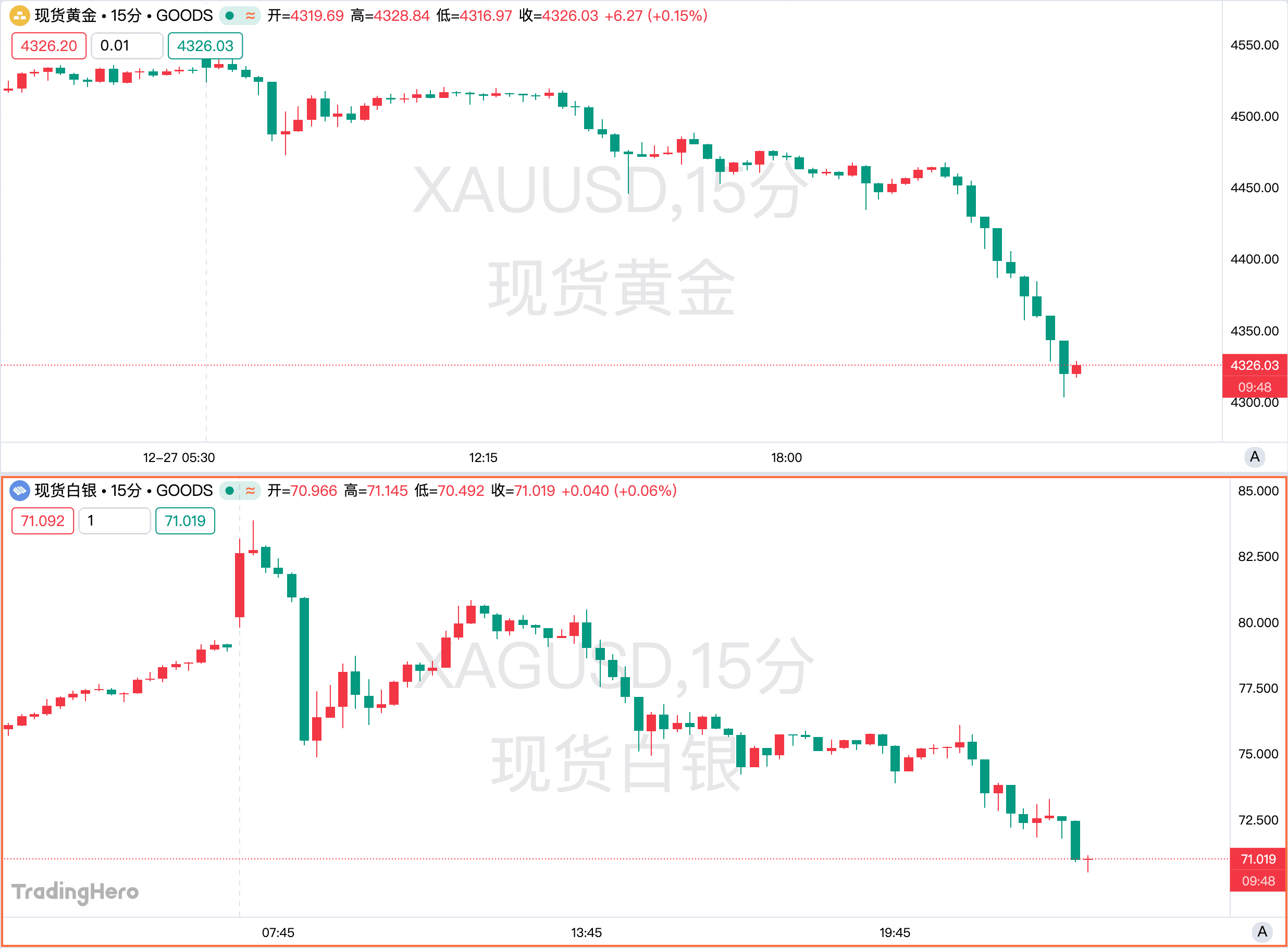 截至周一美盘,现货黄金日内重挫超 200 美元,现货白银日内重挫 10.00%。地缘政治风险降低抑制了避险资金流入,投资者获利了结。