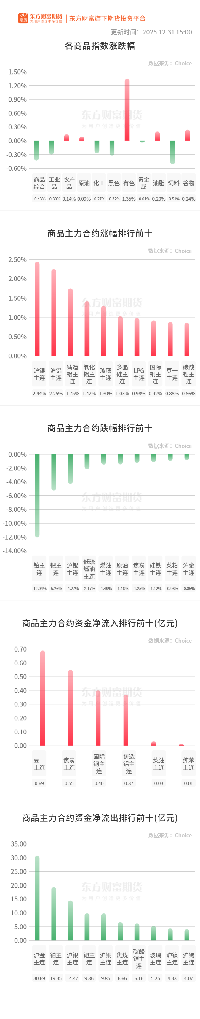不锈钢:2025 年 12 月 31 日,全国主流市场不锈钢 89 仓库口径社会总库存 97.74 万吨,周环比下降 2.76%。其中冷轧不锈钢库存总量 57.42 万吨,周环比下降 3.32%,热轧不锈钢库存总量 40.32 万吨,周环比下降 1.96%。(Mysteel)