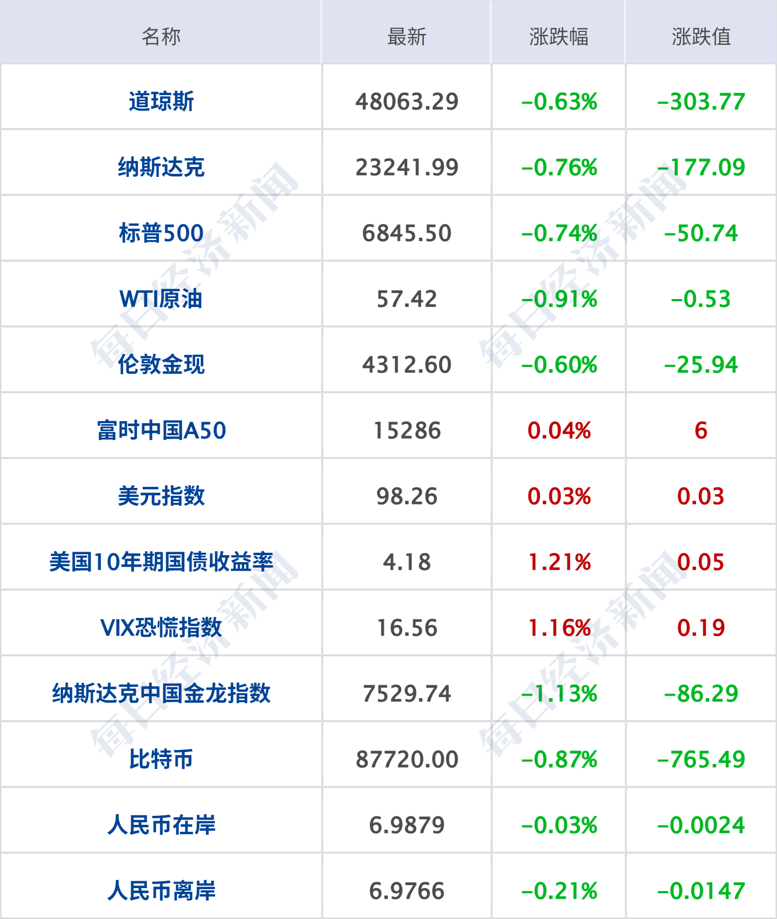 当地时间 2025 年 12 月 31 日,美股三大指数小幅收跌,连续三年录得超两位数涨幅。纳指跌 0.76%,12 月累跌 0.53%,2025 年累涨 20.36%;标普 500 指数跌 0.74%,12 月累跌 0.05%,终结月线七连涨,2025 年累涨 16.39%;道指跌 0.63%,12 月累涨 0.73%,录得月线八连涨,2025 年累涨 12.98%。谷歌 2025 年累涨约 66%,英伟达 2025 年累涨约 39%,微软 2025 年累涨超 15%,Meta 2025 年累涨超 13%,特斯拉 2025 年累涨逾 11%,苹果 2025 年累涨超 9%,奈飞、亚马逊 2025 年累涨超 5%。