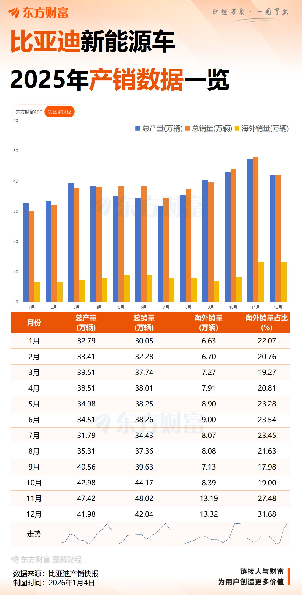 在海外市场,新能源汽车龙头比亚迪的销量突破 104 万辆,较 2024 年翻倍,成为增长重要引擎,其在欧洲、拉美市场销量同比分别增长 65%、92%。