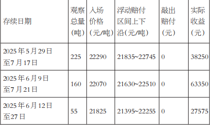 交易执行与风险应对:在交易期间,企业选择了 「区间内现金结算、区间下方双倍远期交割」 的赔付机制。2025 年 6 月上旬,受电厂延长检修时间消息的影响,锌价一度反弹至区间上限附近,随后消息被证伪,锌价快速回落,其间企业累计承接远期多单 100 吨。