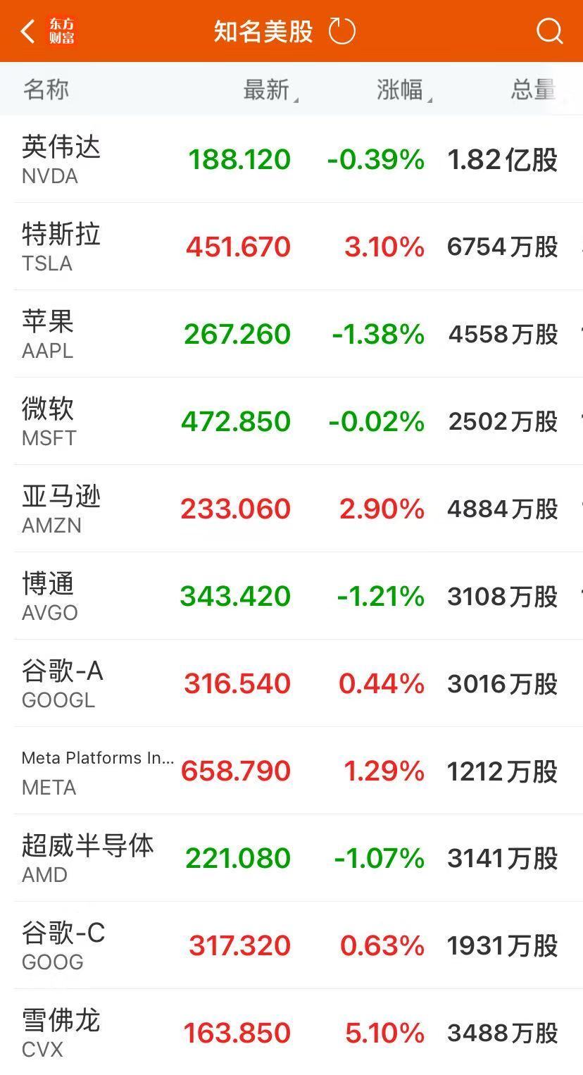 大型科技股多数上涨,特斯拉涨 3.10%,亚马逊涨 2.9%,Meta 涨 1.29%,谷歌 A 涨 0.44%,微软则收跌 0.02%,英伟达跌 0.39%,苹果跌 1.38%。