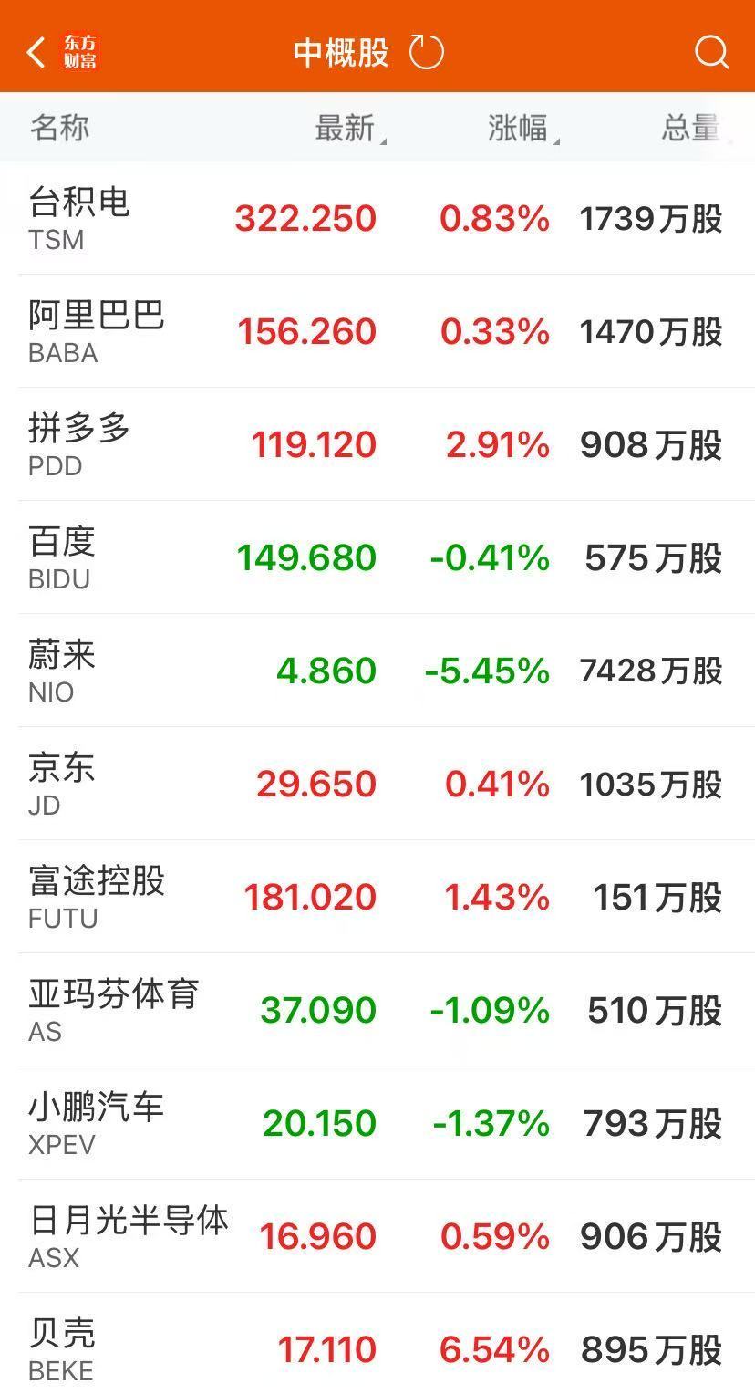 热门中概股多数上涨,纳斯达克中国金龙指数涨 0.49%。贝壳涨超 6%,哔哩哔哩、腾讯音乐涨超 3%,满帮、霸王茶姬等涨超 2%,金山云、富途控股等涨超 1%,唯品会、携程网等小幅上涨;蔚来跌超 5%,万国数据、百胜中国跌超 1%,小鹏汽车、新东方等跌超 1%。