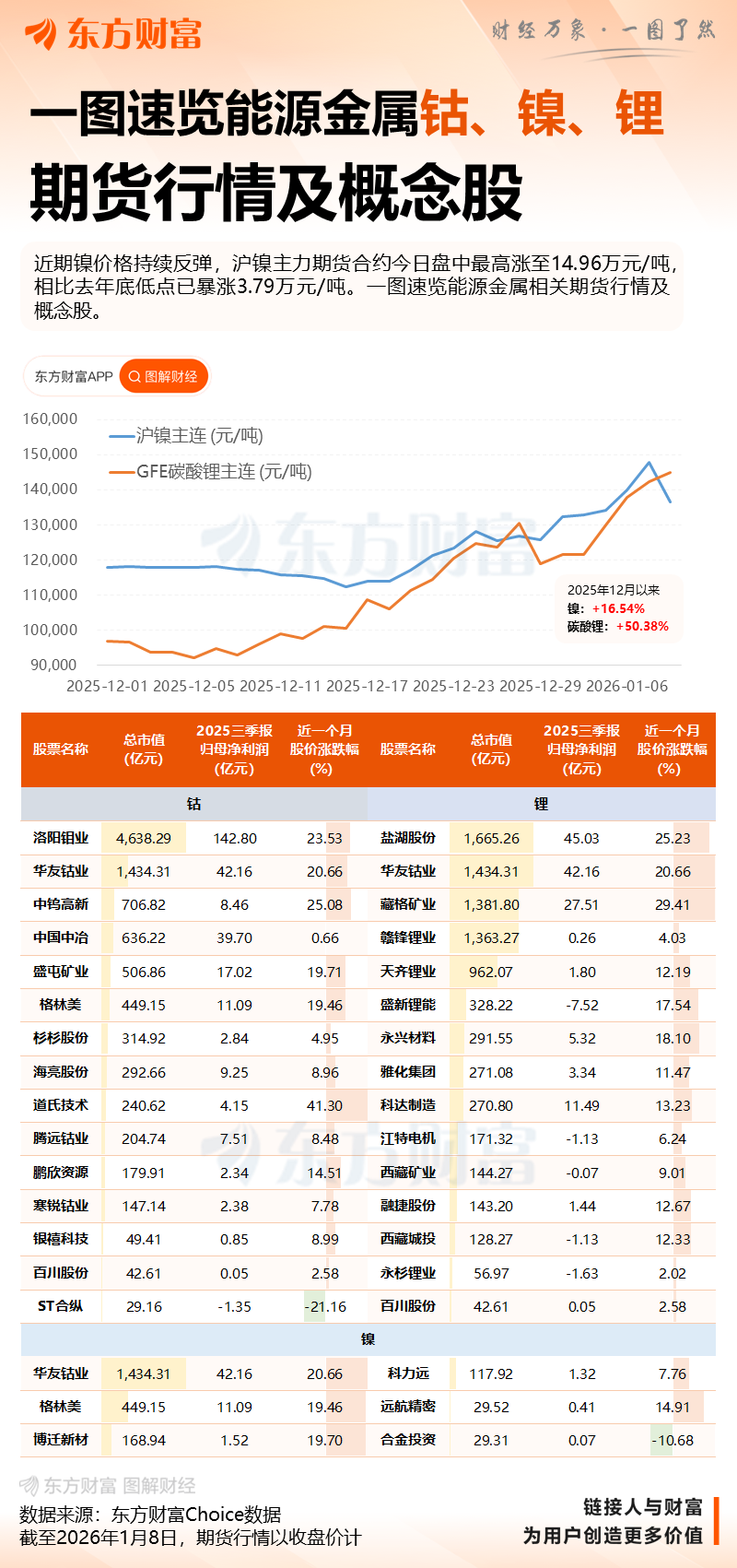 界面新闻注意到,镍、钴、锂、铜等主要资源产品在 2025 年里先后走出了探底回升的趋势,尤其在四季度,各金属资源暴涨。