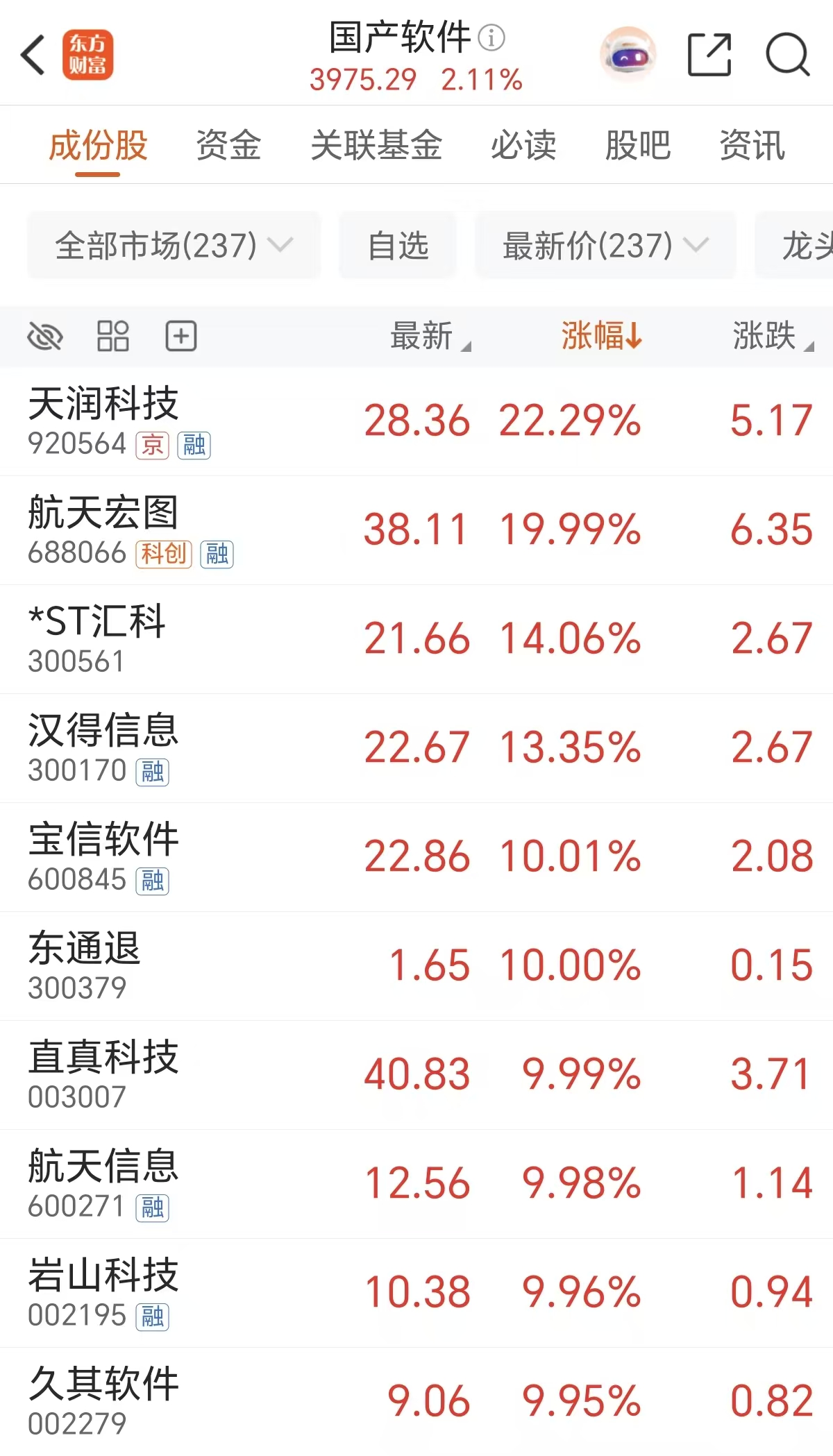 周四 AI 应用方向也爆发,国产软件概念收盘大涨超 2%,个股方面,天润科技大涨超 22%,航天宏图20CM 涨停,宝信软件、直真科技等涨停。