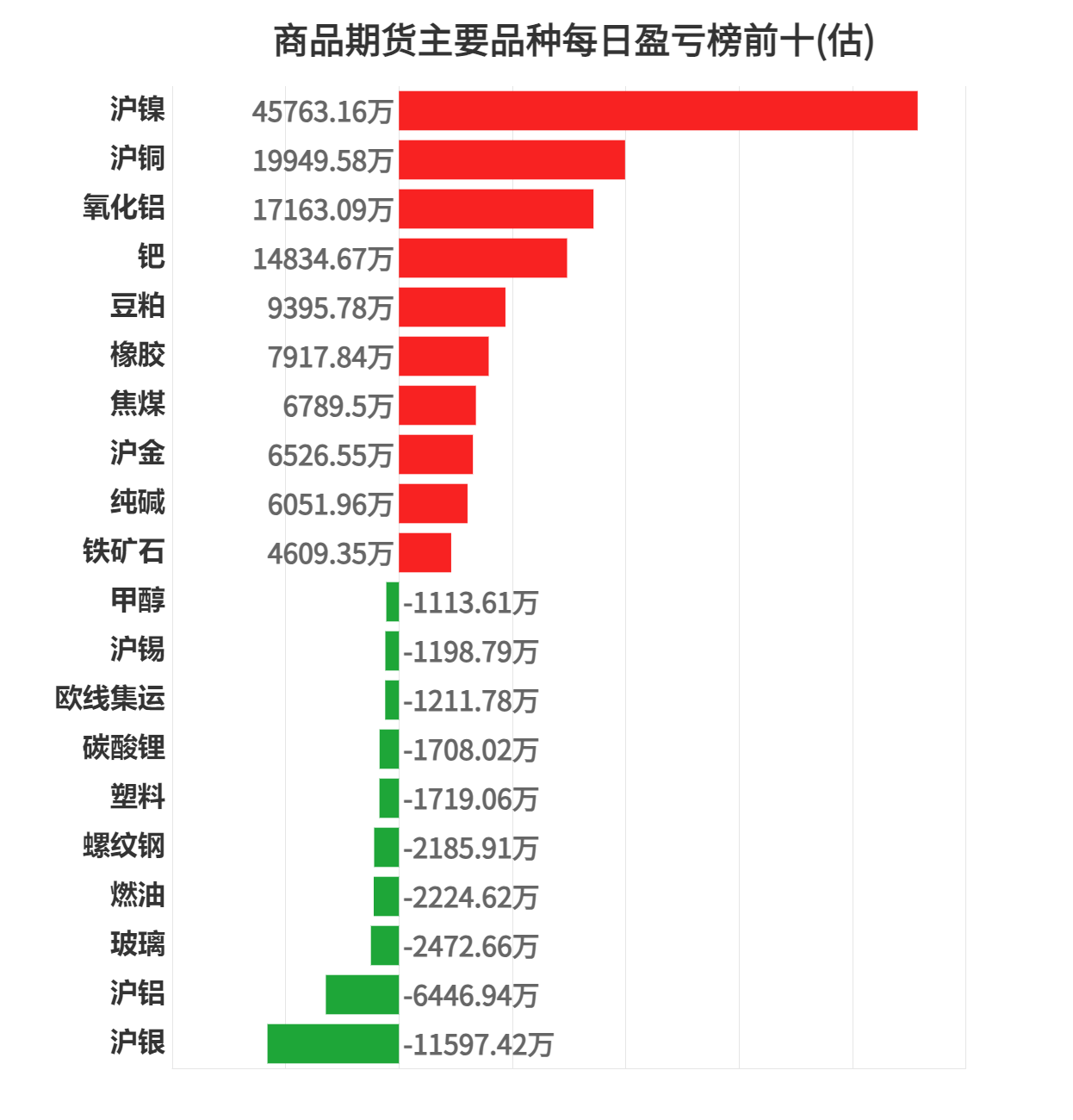 今日商品期货上榜机构席位中沪镍盈利第一,为 45763.16 万元。