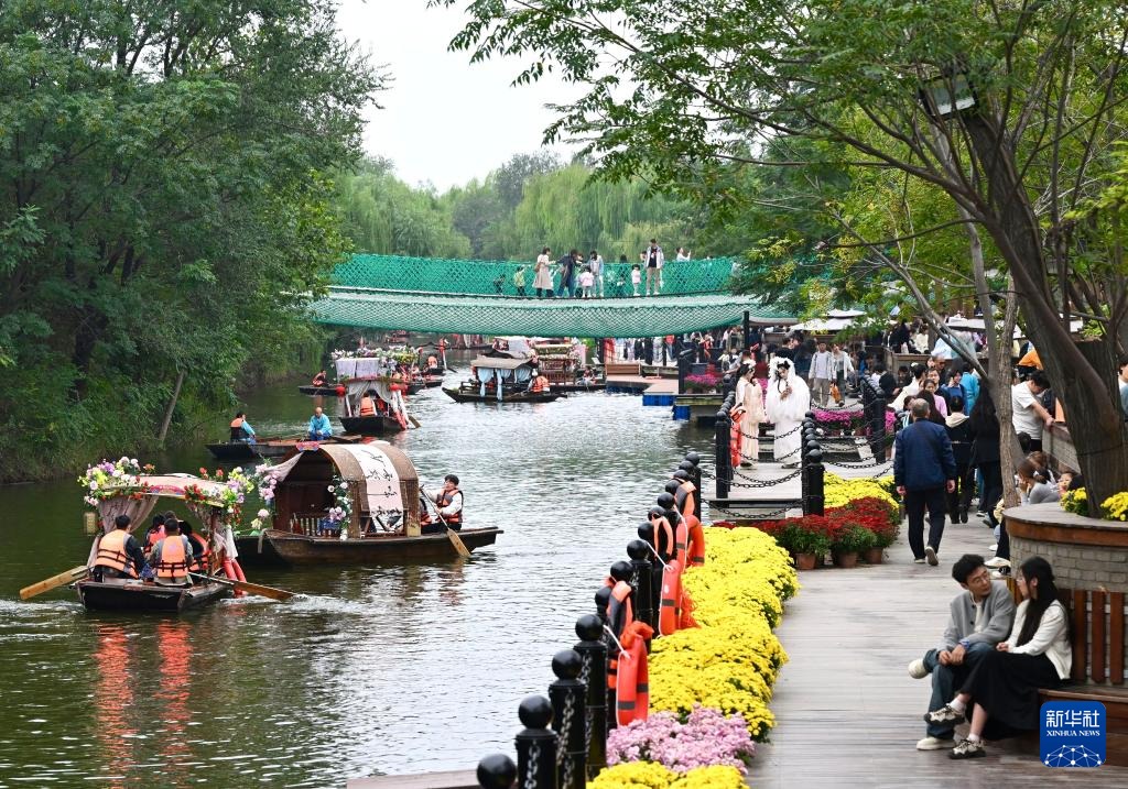 游客在河南省开封市万岁山武侠城游玩 图片来源:新华社