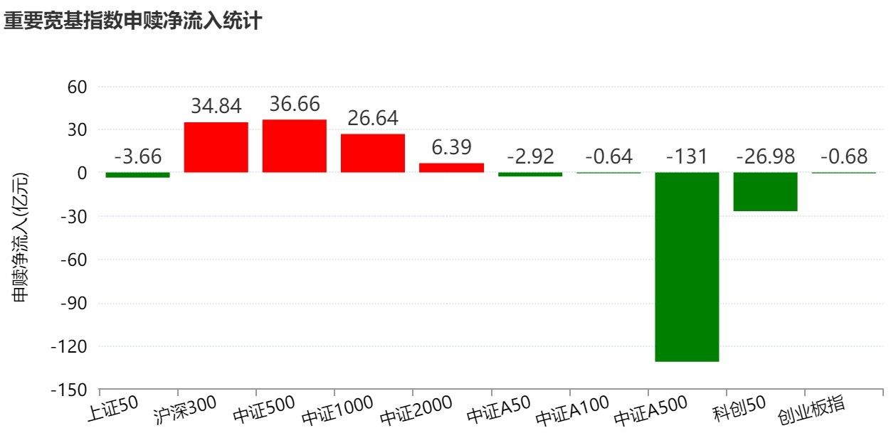 细分来看,主要宽基指数整体资金申赎统计显示,本周中证 A500 净流出 131 亿元。