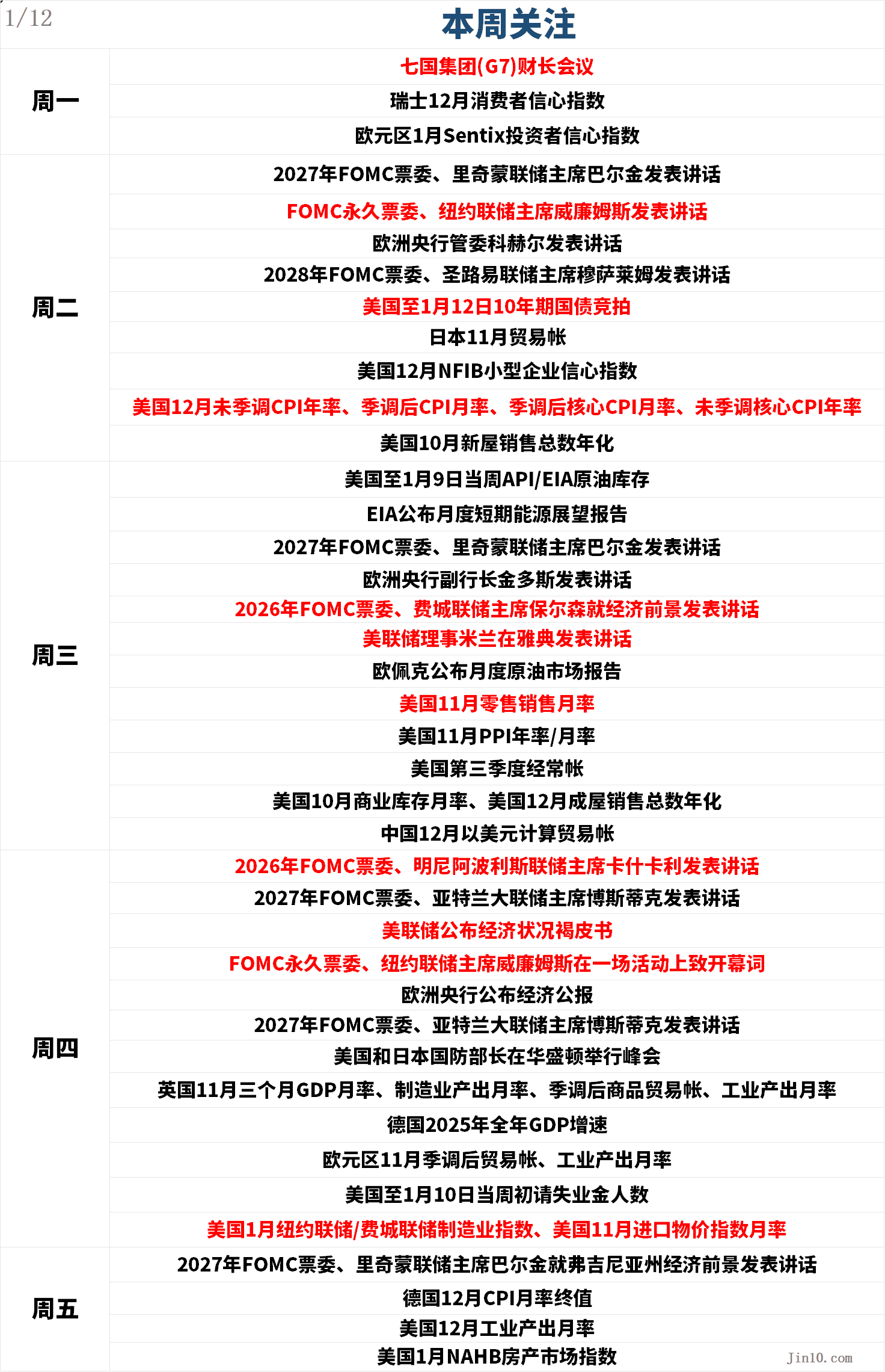 下周最为关键的数据无疑是美国 12 月 CPI 报告。预计该报告将显示通胀仍处于高位,支持美联储暂停行动。