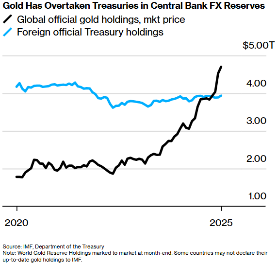 对罗德里克而言,中国积累黄金的行为尤其构成他看涨论点的核心,因为该国正寻求将庞大贸易顺差带来的收益投入到能免受美国干预的资产中。