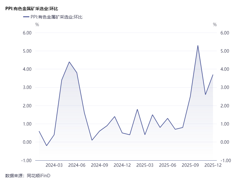 冯琳认为,2025 年 12 月 PPI 环比延续上涨,主因是 「反内卷」 措施及需求季节性增加带动部分行业供需改善,同时有色金属价格上涨提振国内相关行业 PPI 上行。