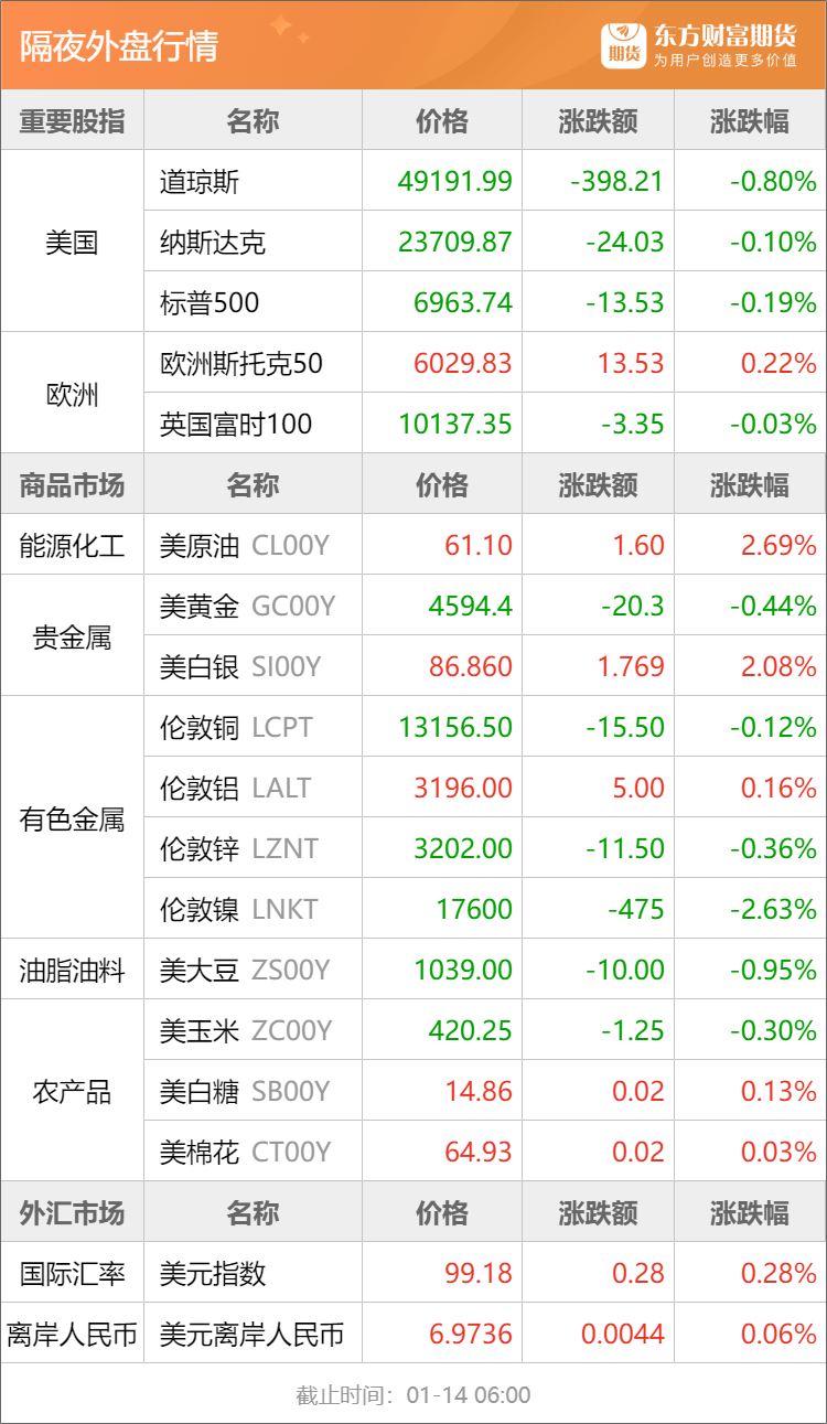 贵金属:芝商所集团当地时间 1 月 12 日通知称,黄金、白银、铂金和钯金的保证金将根据所谓名义价值的百分比来设定,变更自 1 月 13 日收盘起生效。芝商所称,此次调整是在对市场波动进行常规评估之后做出的,以确保充足的抵押品覆盖。(界面新闻)